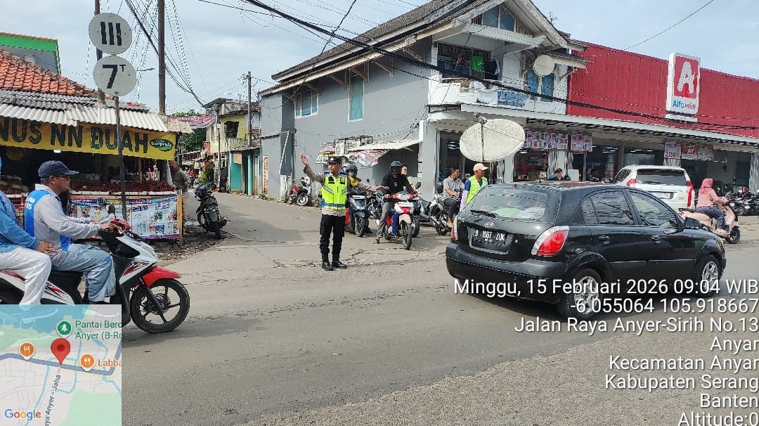CILEGON – Personel Polres Cilegon melaksanakan pengaturan lalu lintas di ruas jalan wisata Anyer, tepatnya di depan kawasan wisata Pantai Pasir Putih Bandulu Anyer, pada akhir pekan. Kegiatan ini dilakukan untuk mengantisipasi kepadatan arus kendaraan yang meningkat seiring tingginya kunjungan wisatawan.Berdasarkan pantauan di lokasi, seorang personel kepolisian tampak berjaga di tepi jalan sambil mengatur...