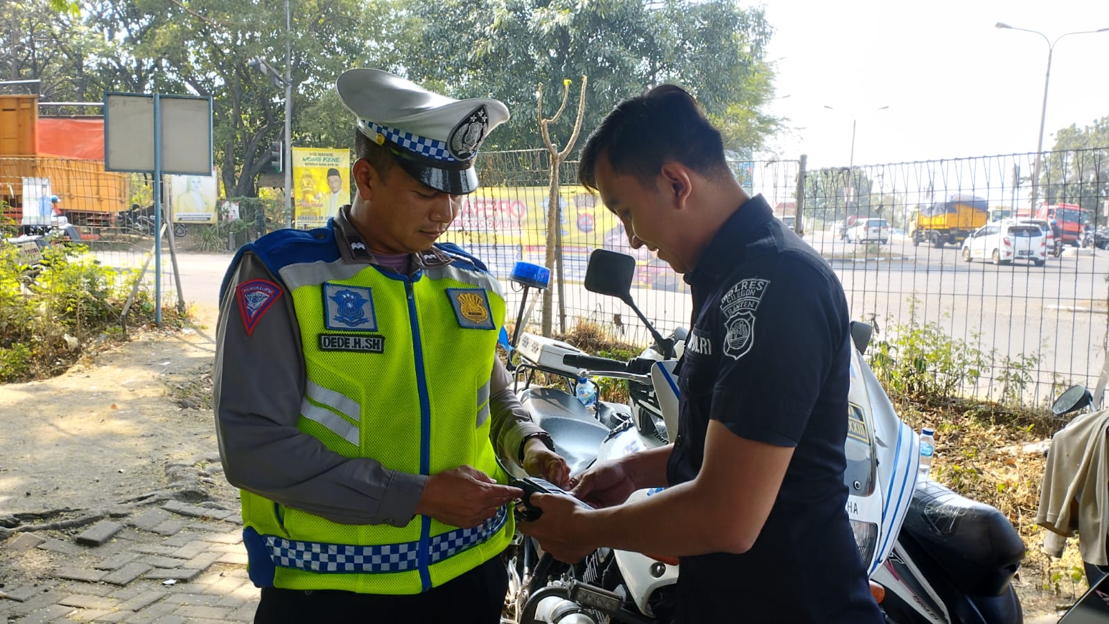 Brigpol Hadi sudrajat selaku Personil Siwas Polres Cilegon Melaksanakan Kegiatan Rutin pengaturan Arus Lalu Lintas di Jalur Protokol jalan Utama Kota Cilegon.