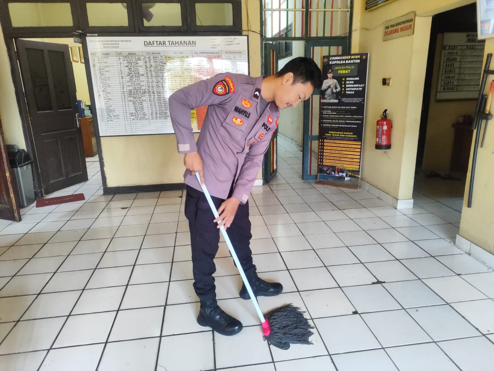 Anggota Piket Sattahti Polres Cilegon Selalu Melakukan Merutinkan Bersih-Bersih Di Sekitar Rutan