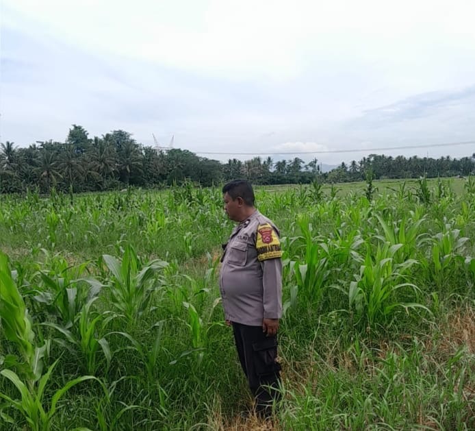 Cek Tanaman Jagung Personil Bhabinkamtibmas bersama warga Memastikan Pertumbuhan Tanaman Bagus