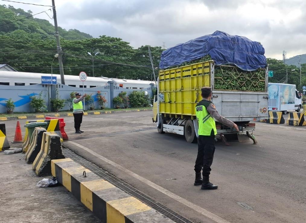 Personil Polsek KSKP Merak Atur Antrian Kendaraan di Pelabuhan Ferry Merak