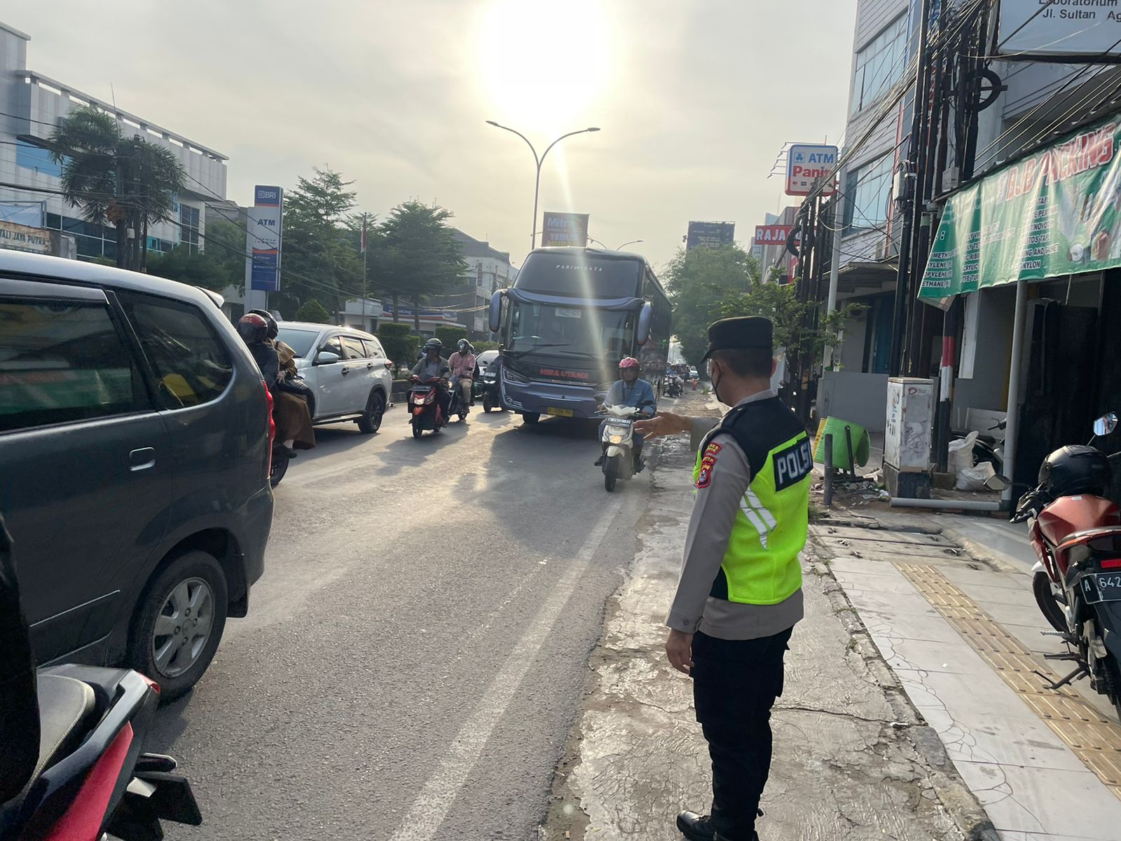 Polres Cilegon, Brigpol Hadi sudrajat melaksanakan kegiatan pengaturan arus