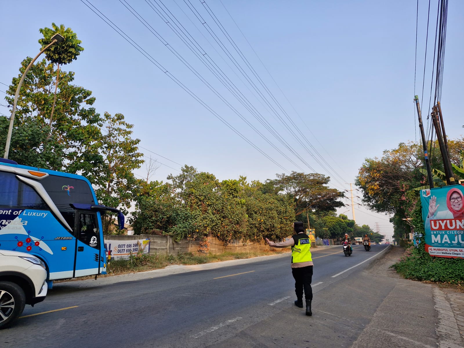 Polres Cilegon, Aipda Emi Prasetyo melaksanakan kegiatan pengaturan arus lalu