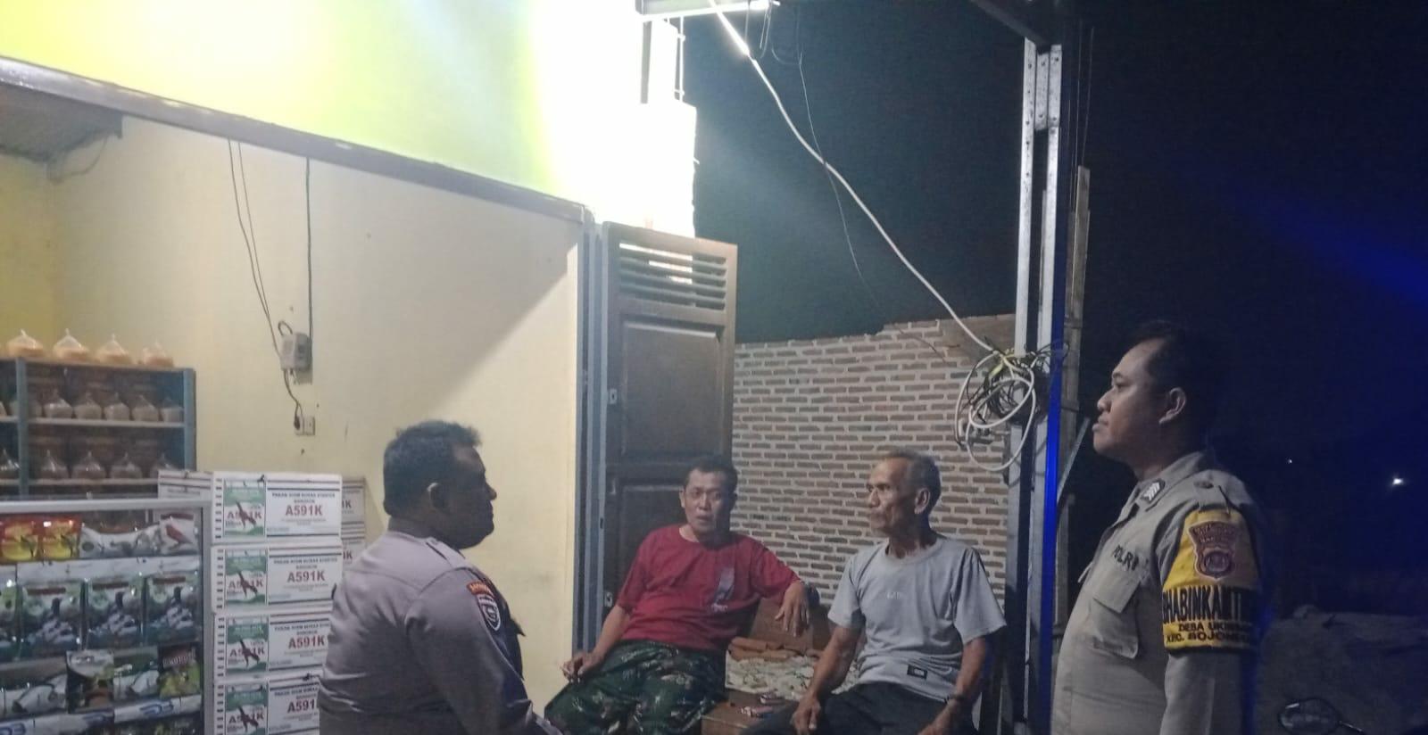 Bhabinkamtibmas menyambangi  warga  yang sedang duduk-duduk santai dan ngobrol , pada kesempatan yang baik tersebut Bhabinkamtibmas menyampaikan pesan-pesan kamtibmas dan Mengajak masyarakat untuk meningkatkan kewaspadaan serta untuk bersama-sama ikut serta menjaga keamanan lingkungan guna mencegah terjadinya gangguan kamtibmas.