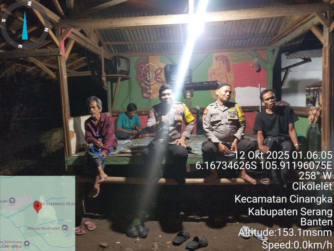 *Polres Cilegon* || Personel Bhabinkamtibmas Polsek Cinangka melaksanakan Program Komandan Wish Kapolda Banten RONDA SATKAMLING menyampaikan komunikasi dengan Petugas Siskamling agar berperan aktif dalam menciptakan Harkamtibmas yang aman dan Kondusif, Senin (13/10/2025).