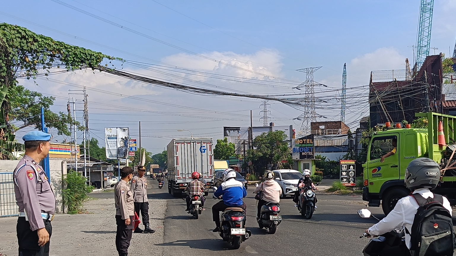 Laksanakan pengaturan lalin !!! Kapolsek Pulomerak bantu lancarkan lalin di simpang Gerem bawah