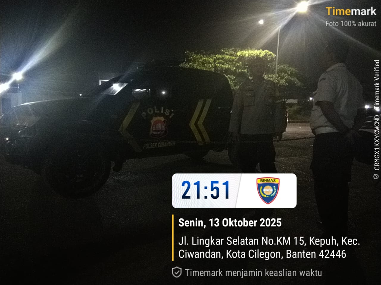 Cilegon - Personil Polsek Ciwandan Ciptakan situasi keamanan dan ketertiban di masyarakat (Kamtibmas) yang aman kondusif Dengan Melaksanakan kegiatan patroli malam guna mencegah gangguan kamtibmas dan kejahatan jalanan, Selasa (14/10/2025).