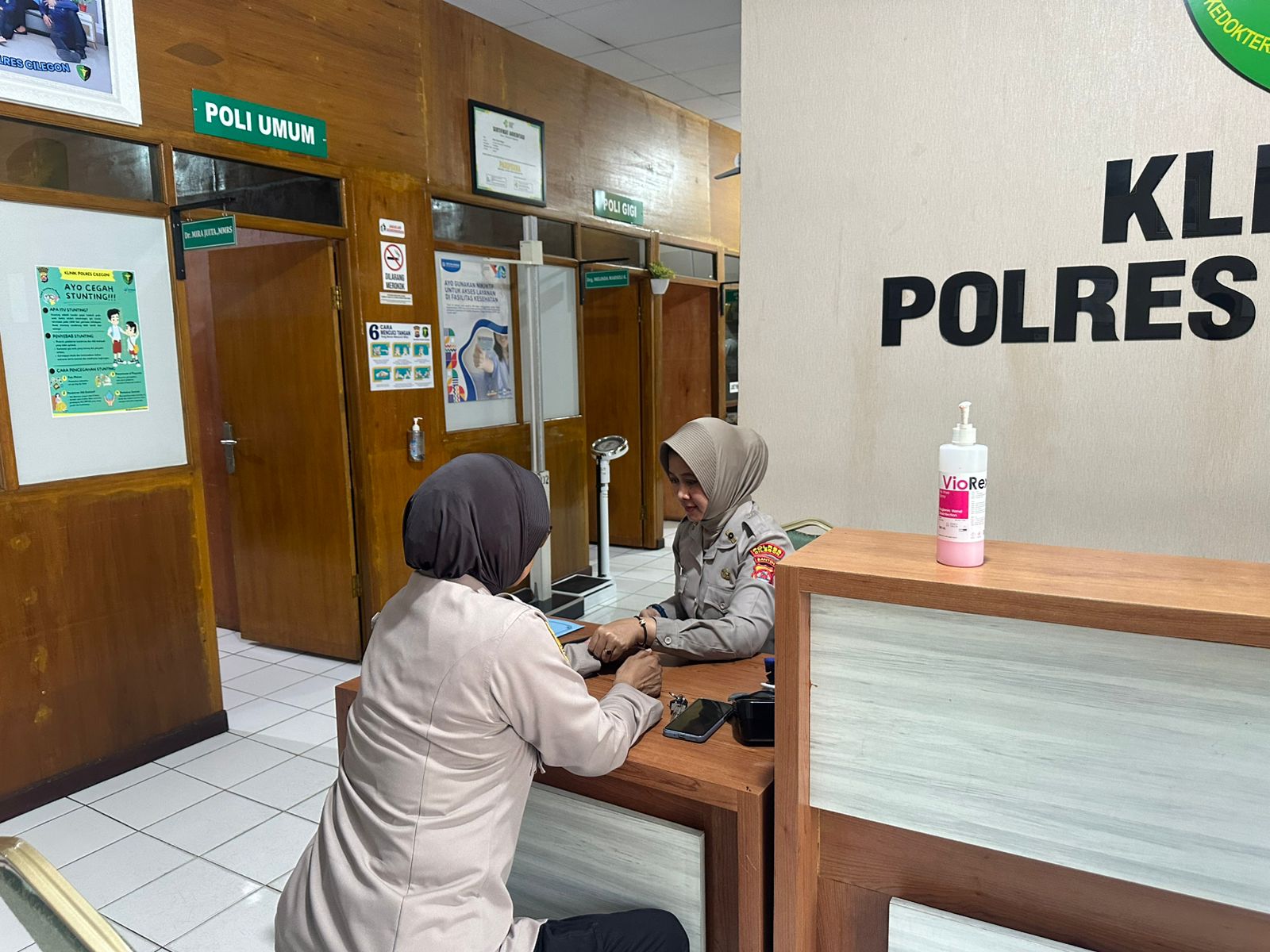Cilegon – Polres Cilegon melaksanakan kegiatan pemeriksaan kesehatan rutin bagi seluruh anggota dan keluarga sebagai bentuk kepedulian terhadap kesehatan personel kepolisian. Pemeriksaan ini menjadi bagian dari upaya menjaga kebugaran anggota agar dapat menjalankan tugas-tugas kepolisian dengan optimal. Kapolres Cilegon, AKBP Martua Raja Taripar Laut Silitonga, menegaskan bahwa kesehatan anggota merupakan aset penting dalam mendukung pelaksanaan tugas pokok kepolisian. Oleh karena itu, perhatian terhadap kesehatan personel menjadi prioritas utama. “Kesehatan anggota sangat penting dan menjadi perhatian utama kami. Kami berkomitmen memberikan pelayanan kesehatan terbaik, serta melakukan pemeriksaan secara rutin dan berkala. Dengan demikian, anggota dapat memberikan pelayanan prima kepada masyarakat dan turut menjaga harkamtibmas,” ujar AKBP Martua Raja Taripar Laut Silitonga. Kasidokes Polres Cilegon, Penda Tim Yuniangsih, Amd.Kep, menyampaikan bahwa pihaknya siap memberikan layanan kesehatan terbaik untuk anggota dan keluarganya. “Kami dari Sidokes berkomitmen menjaga kesehatan anggota dan selalu berusaha memberikan yang terbaik. Beberapa program pelayanan kesehatan yang kami sediakan antara lain pengobatan di klinik Polres bagi anggota dan keluarga yang sakit, layanan konsultasi dokter secara online, serta pemeriksaan kesehatan rutin maupun berkala,” ungkap Yuniangsih. Dengan adanya program ini, diharapkan seluruh personel Polres Cilegon dapat tetap sehat, prima, dan siap menjalankan tugas-tugas kepolisian demi pelayanan maksimal kepada masyarakat. Tutup Kasidokes"