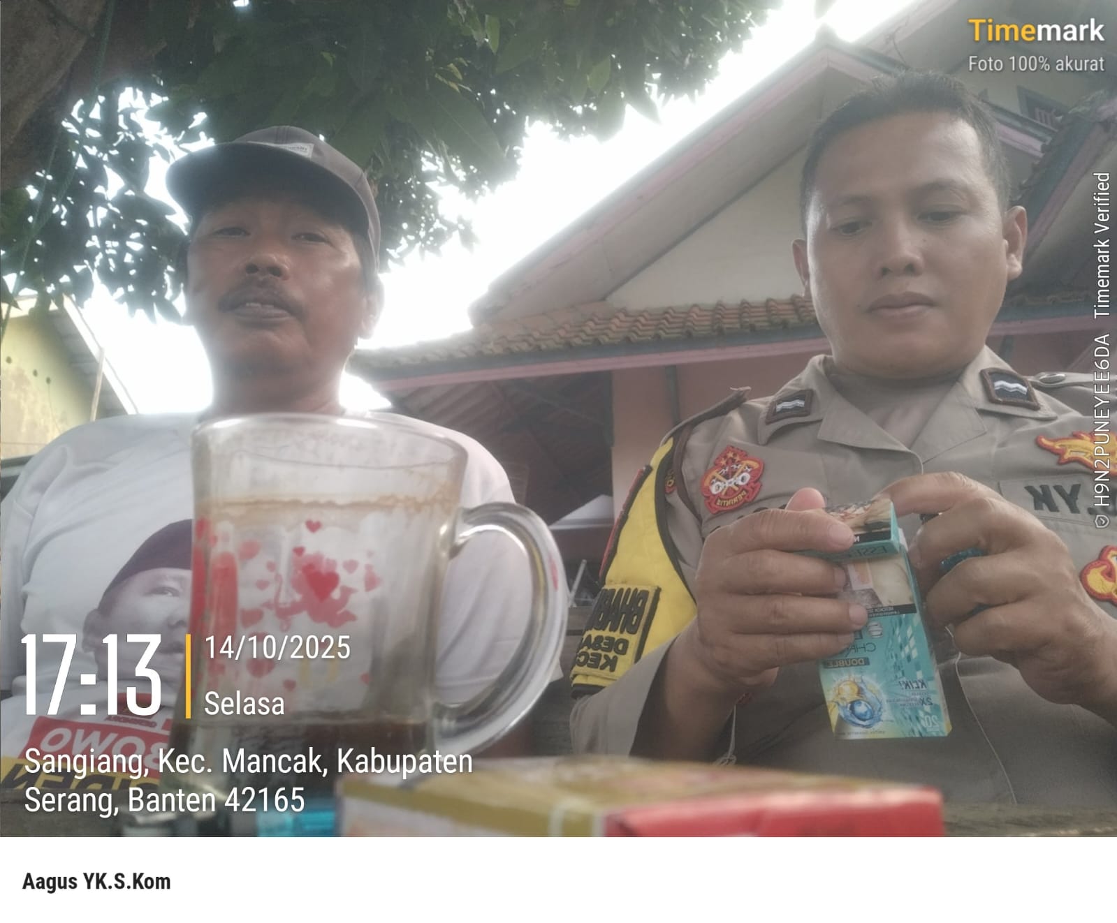 Mancak - Sebagai Pengemban Fungsi Harkamtibmas, Bhabinkamtibmas Polsek Mancak Kegiatan Melaksanakan Kegiatan Sambang dan Dialogis Kepada Warga untuk ciptakan situasi aman dan kondusif di daerah kec.mancak Kab. Serang. SELASA,(14/10/2025).