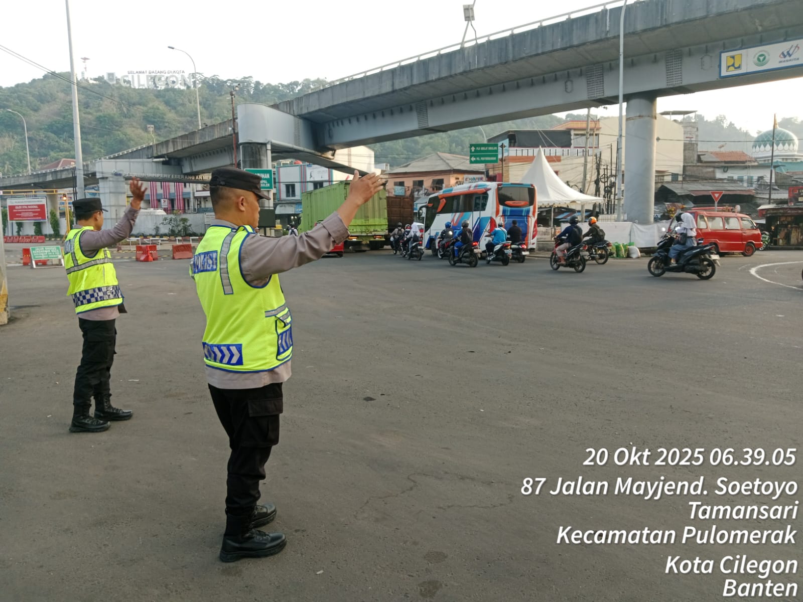 Cilegon - Dalam rangka peningkatan pelayanan prima kepada masyarakat, Kskp Merak Polres Cilegon Polda Banten melaksanakan pengaturan antrian R4 yang akan masuk ke Kapal Ferry di Pelabuhan Merak, Senin (20/10/2025).