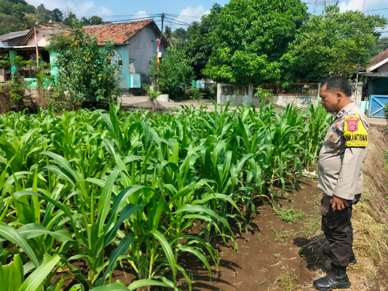 Oleh sebab itu Kapolsek Pulomerak dan  bhabinkamtibmas polsek Pulomerak bersama masyarakat tani kebon pisang Kel. Lebakgede kec. Pulomerak saat ini lakukan perawatan tanaman jagung, ujarnya