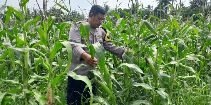 Personil Bhabinkamtibmas Tegalbunder Cek Tanaman Jagung, Bhabinkamtibmas Beri Sosialisasi