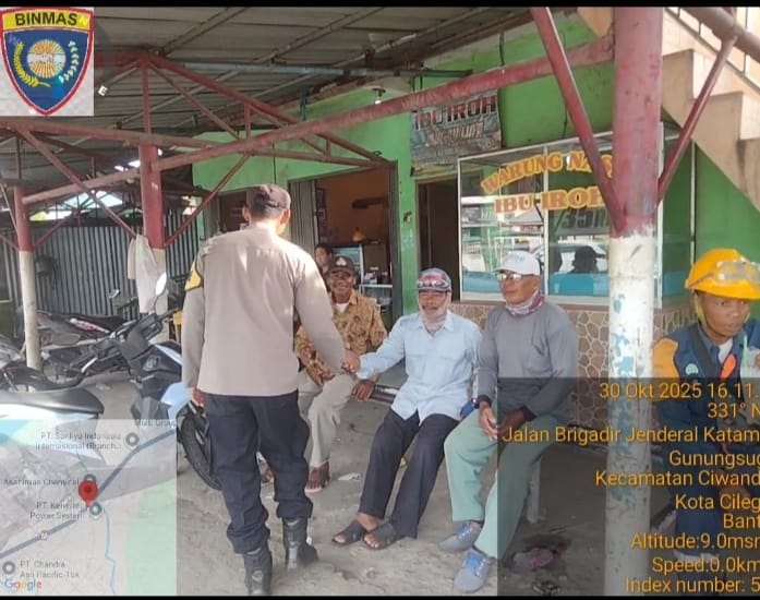 Cilegon - Personil Bhabinkamtibmas Polsek Ciwandan Polres Cilegon Polda Banten Menyampaikan Pesan Kamtibmas dan mengajak masyarakat terus aktif dalam kepedulian terhadap Pemeliharaan keamanan lingkungan di daerah Binaanya, Kamis (30/10/2025).