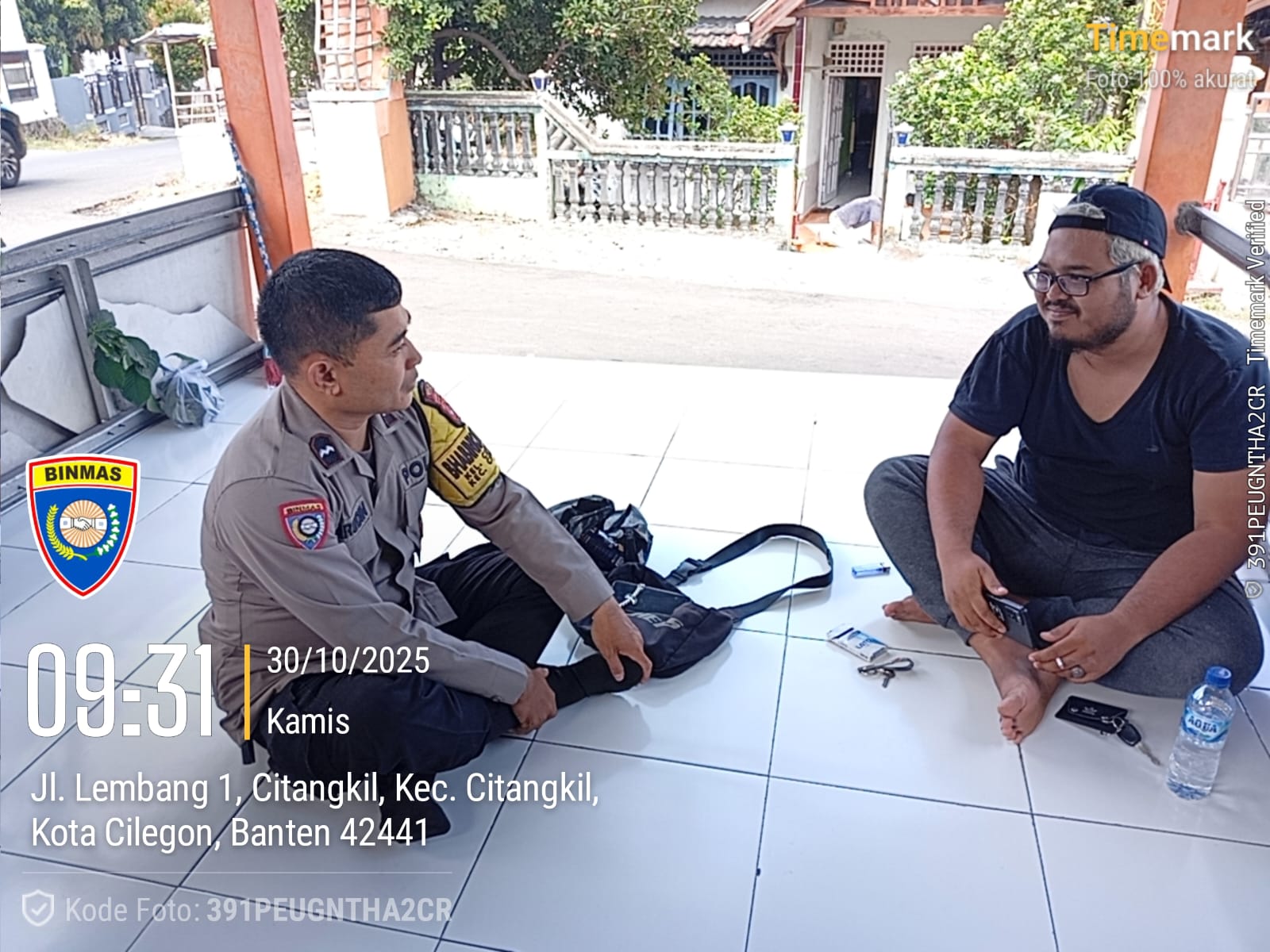 Cilegon - Personil Bhabinkamtibmas Polsek Ciwandan Polres Cilegon Polda Banten Menyampaikan Pesan Kamtibmas dan mengajak masyarakat terus aktif dalam kepedulian terhadap Pemeliharaan keamanan lingkungan di daerah Binaanya, Kamis (30/10/2025).