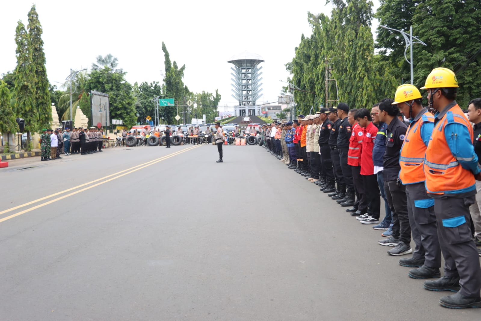 Polres Cilegon Melaksanakan Apel Kesiapan Menghadapi Bencana Cuaca Ekstrem dan Bencana Hidrometeorologi Bersama Instansi Lain