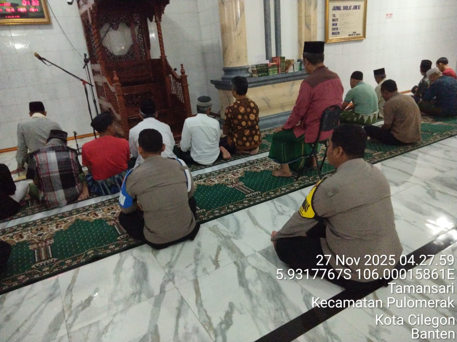 “Dalam kegiatan tersebut, Personil Polsek Kp Polres Cilegon Polda Banten turut berbaur dengan jemaah masjid dalam melaksanakan shalat subuh berjamaah. Setelah itu, dilakukan dialog interaktif antara petugas kepolisian dan masyarakat untuk mendengarkan aspirasi serta memperoleh masukan terkait dengan situasi keamanan dan ketertiban di lingkungan sekitar,” tambah Kapolsek.