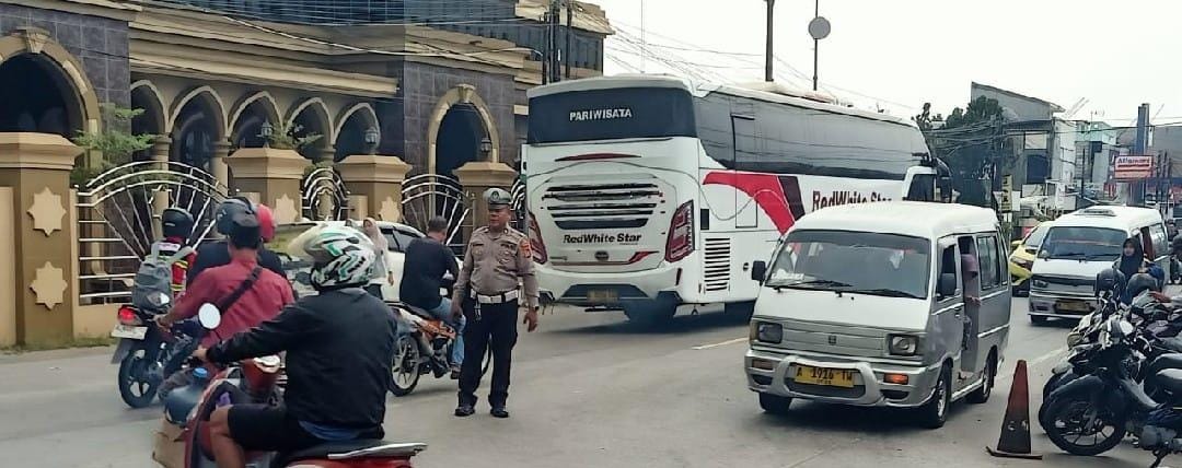 Polsek Anyar Pengaturan Lalu Lintas di Jalur Lancarkan Arus Wisata