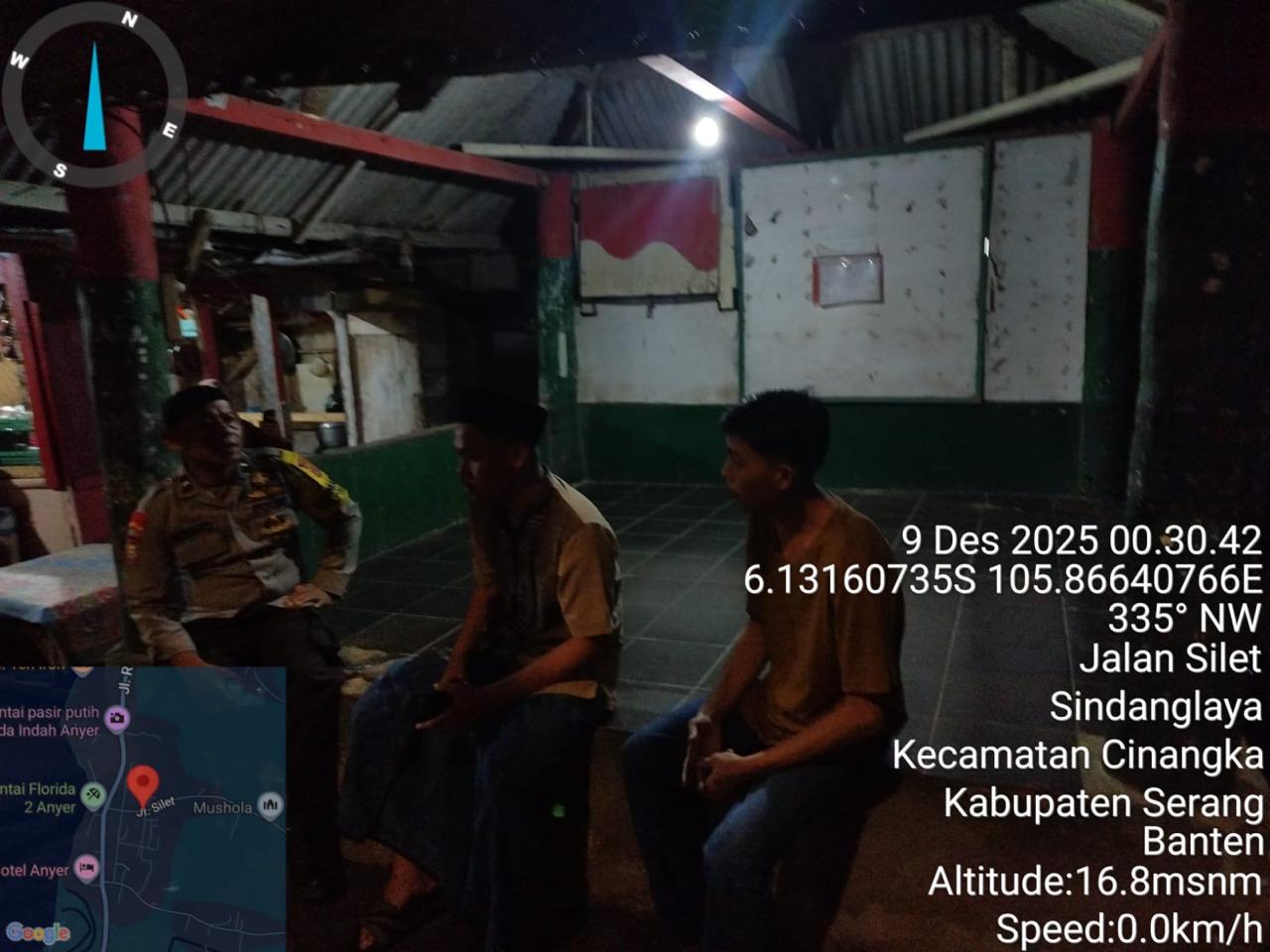*Polres Cilegon* || Personel Bhabinkamtibmas Polsek Cinangka melaksanakan Program Komandan Wish Kapolda Banten RONDA SATKAMLING menyampaikan komunikasi dengan Petugas Siskamling agar berperan aktif dalam menciptakan Harkamtibmas yang aman dan Kondusif, Selasa (09/12/2025).