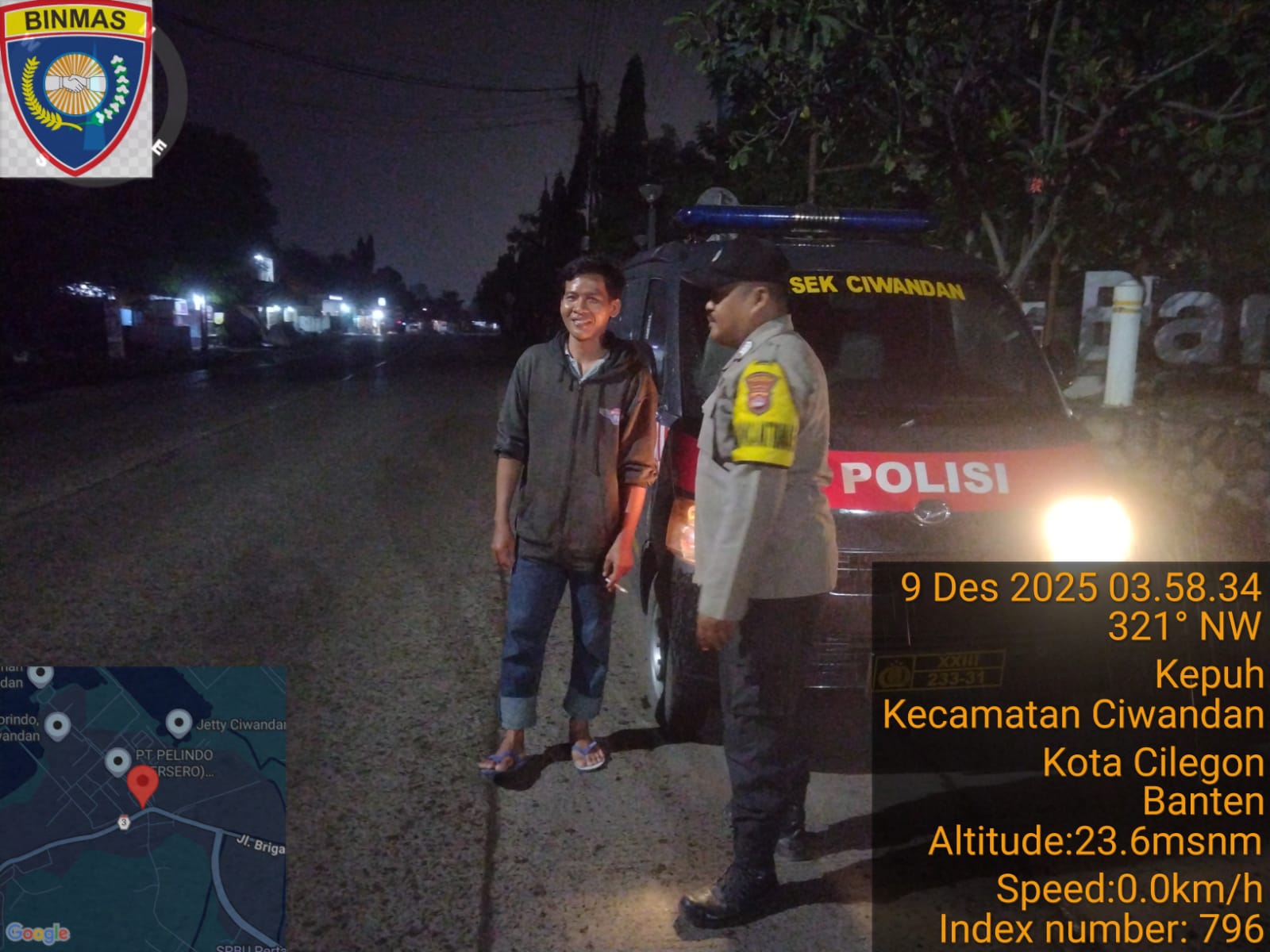 Dalam Hal ini Personil Polsek Ciwandan Polres Cilegon Polda Banten melakukan patroli malam menggunakan kendaraan patroli menyusuri jalur utama dan perumahan penduduk, sebagai langkah untuk mencegah gangguan keamanan yang beragam yaitu pencurian ternak (curnak), pencurian kendaraan bermotor (curanmor) maupun kejahatan lainnya.