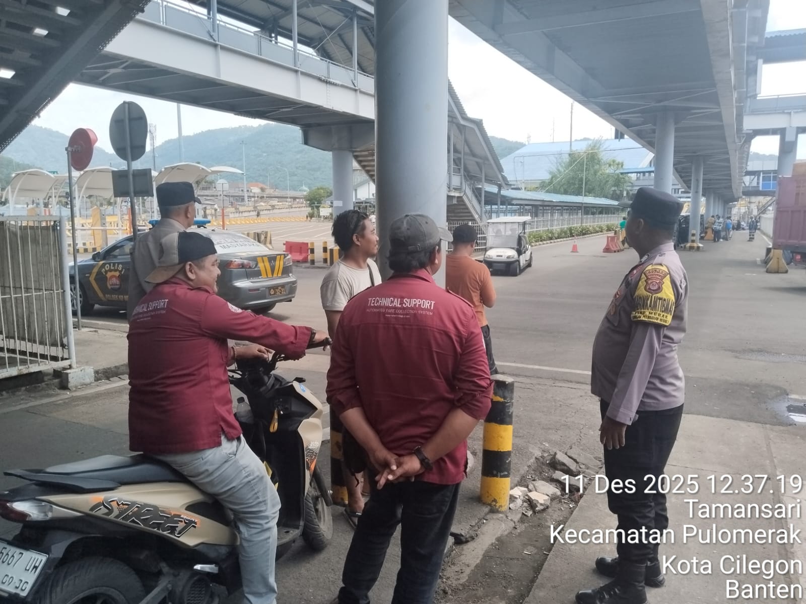 Cilegon - Personel Polsek Kskp Merak Polres Cilegon Polda Banten melaksanakan sambang dan patroli kawasan pelabuhan merak dalam rangka menjaga Harkamtibmas di Kawasan Pelabuhan Merak, Kamis (11/12/2025).