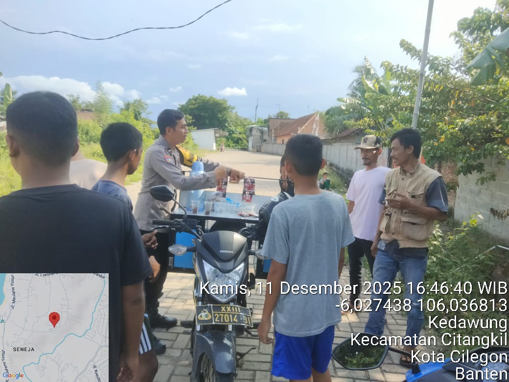 Cilegon - Bhabinkamtibmas Polsek Ciwandan Polres Cilegon Polda Banten, AIPDA Edianto melaksanakan kegiatan WARBIN (warung Blnhabinkamtibmas) di Lingkungan Binaan, Kamis (11/12/2025).
