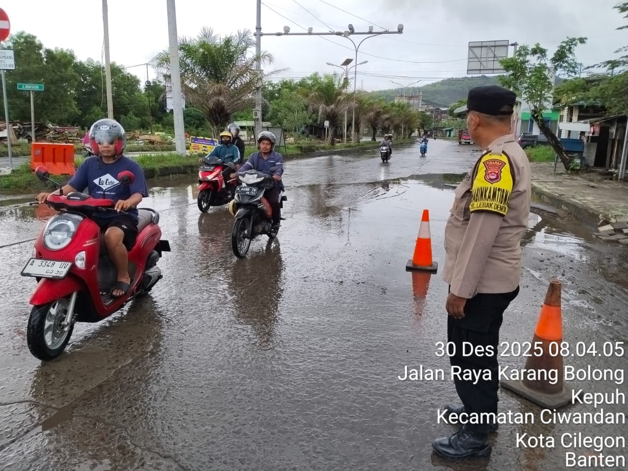 Cilegon - Personil Pos Pam 5 Polsek Ciwandan Polres Cilegon Polda Banten melaksanakan kegiatan pengaturan lalu-lintas dalam pengamanan Libur Natal 2025 Dan Tahun Baru 2026. Selasa (30/12/2025).