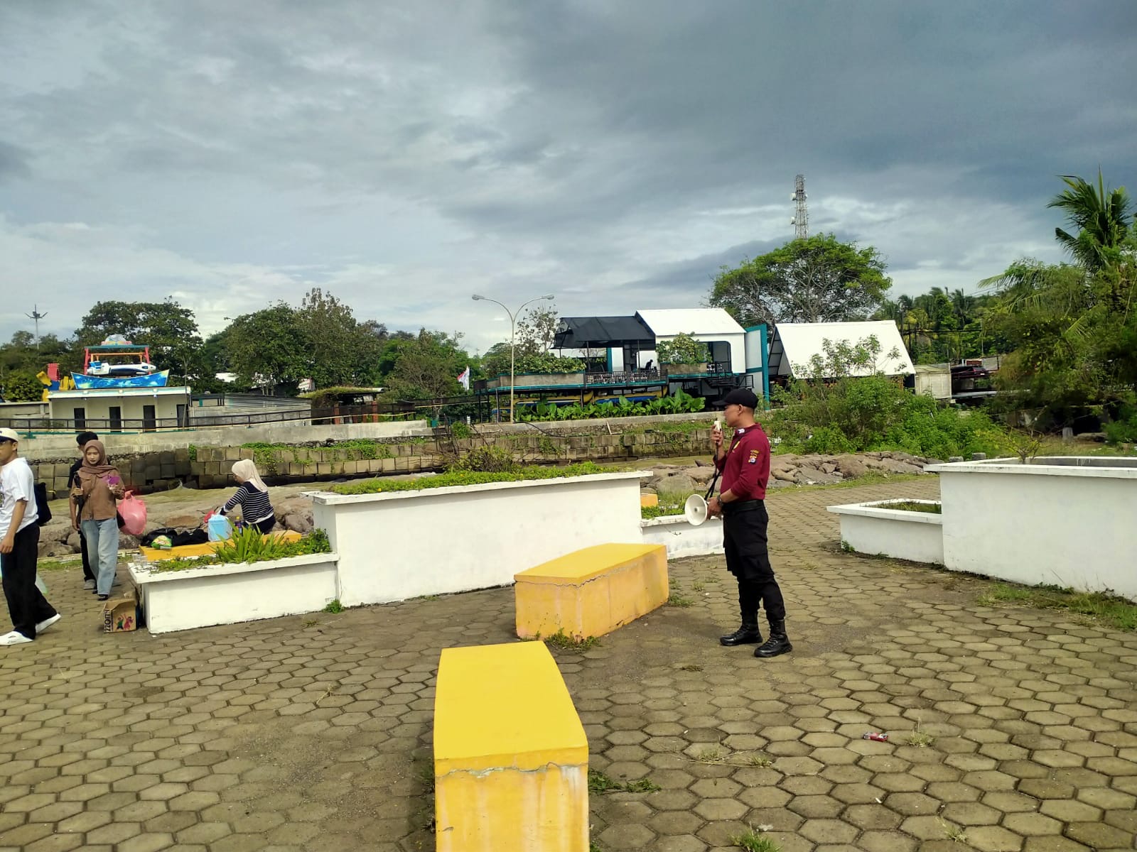 Personel Satpamobvit Polres Cilegon melaksanakan patroli wisata serta memberikan himbauan kepada para pengunjung, guna mewujudkan harkamtibmas di daerah hukum Polres Cilegon. Dengan pengawasan yang dilakukan oleh personel Satpamobvit Polres Cilegon, situasi di sekitar pantai ini tetap aman dari berbagai potensi ancaman.