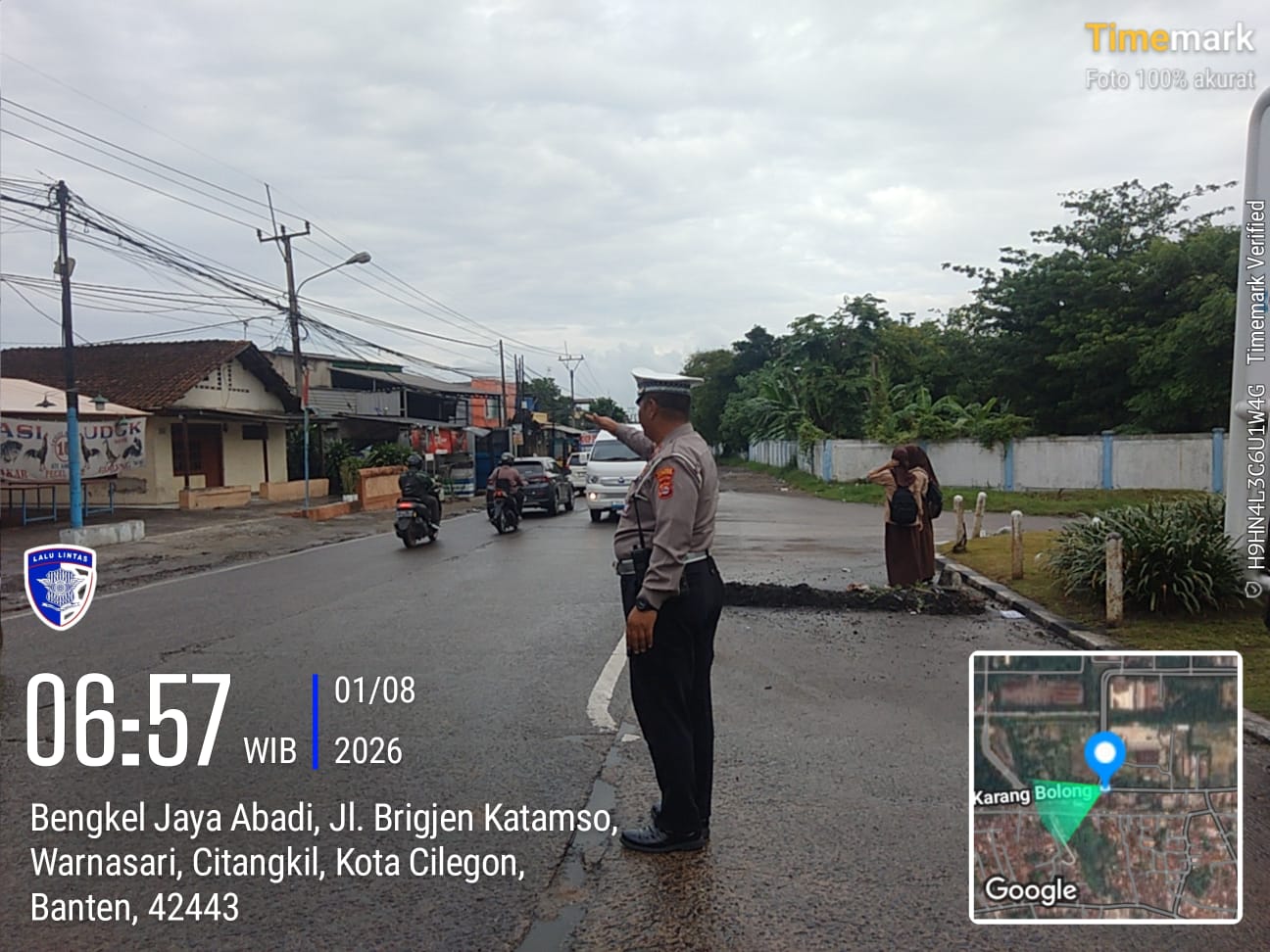 Cilegon - Tingginya mobilitas masyarakat pada jam-jam sibuk, tingkat kerawanan baik itu kemacetan ataupun kecelakaan pasti ada potensi, sehingga untuk mengantisipasi hal tersebut Personil Polsek Ciwandan Polres Cilegon Polda Banten Bhabinkamtibmas melaksanakan Strong Point pada sejumlah lokasi, Kamis (08/01/2026).