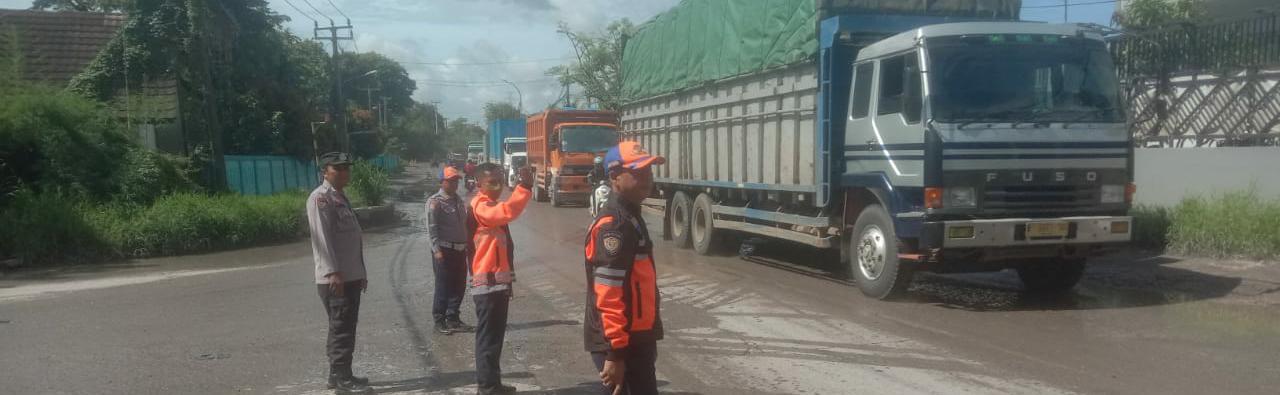 Bripka Leo & Dishub Laksanakan Gatur Lalin sore hari Di Jalan Raya PT SMI Bojonegara