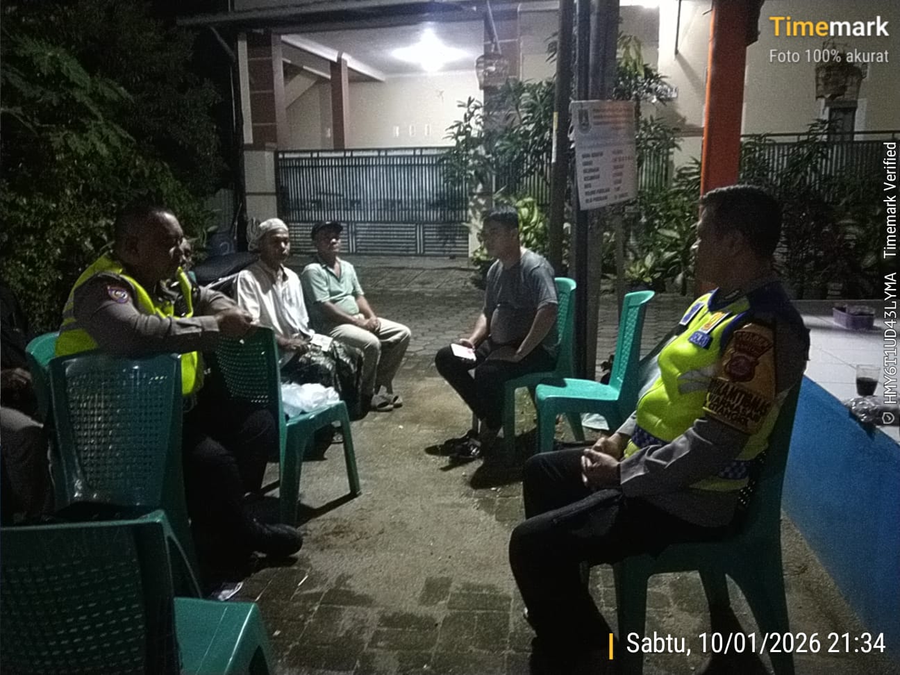 Cilegon - Kasat Binmas Polsek Ciwandan Polres Cilegon Polda Banten IPTU Muhyidin bersama Personil Bhabinkamtibmas Polsek Ciwandan Polres Cilegon Polda Banten BRIPKA Heri Siswantoko melakukan kontrol Pos Ronda dan Berikan himbauan kepada pihak terkait dan warga, agar kegiatan Siskamling ditingkatkan lagi, Minggu (11/01/2026).
