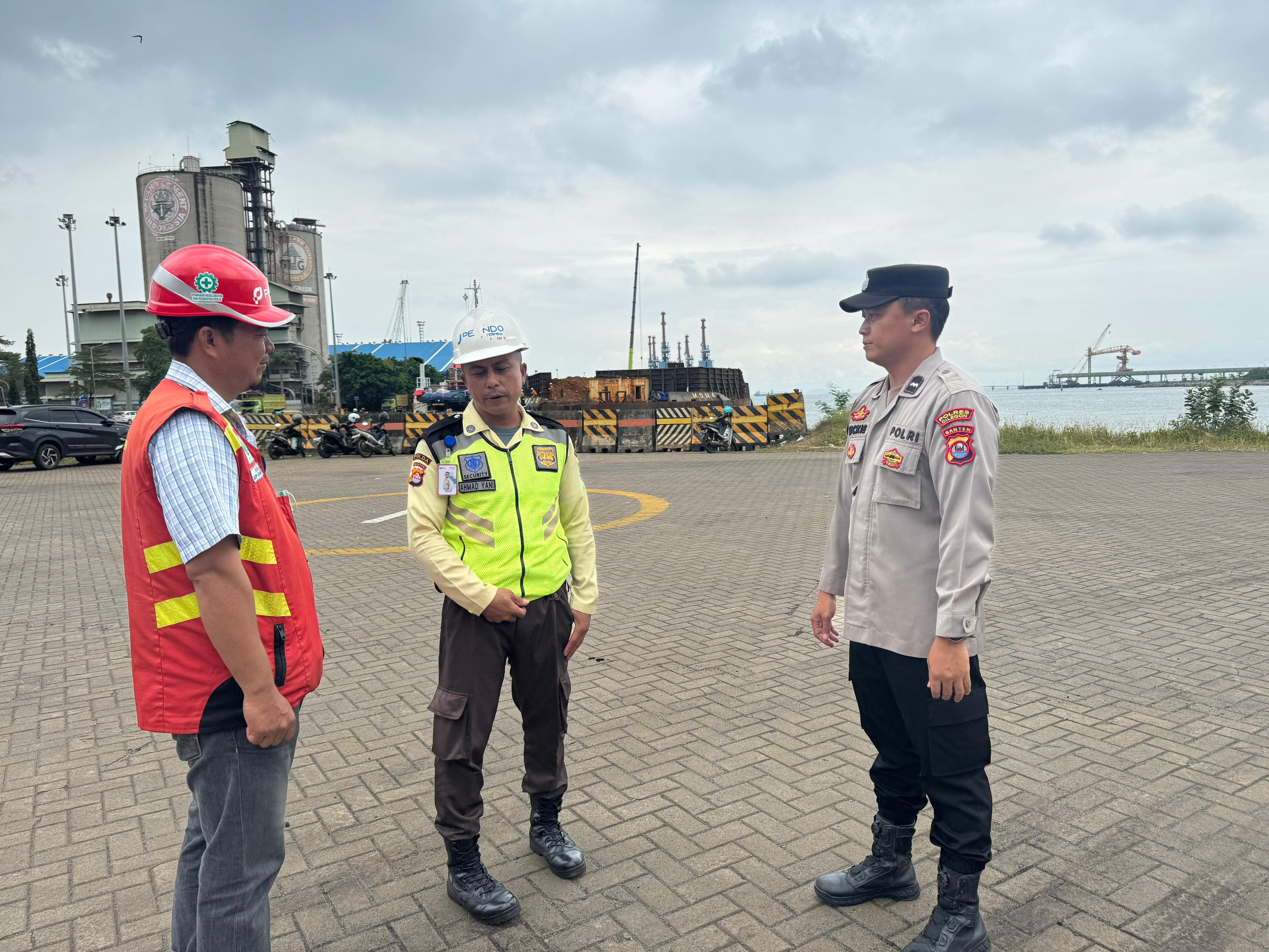 Kapolres Cilegon Polda Banten AKBP Martua Raja Taripar Laut Melalui Kapolsek Kskp Banten Polres Cilegon Polda Banten AKP Fredo Leonard Mengatakan Personil Polsek Kskp Banten Rutin menyambangi anggota Security dan memberikan himbauan agar para anggota Security bisa melaksanakan tugas menjaga keamanan di lingkungan Kawasan Pelabuhan.