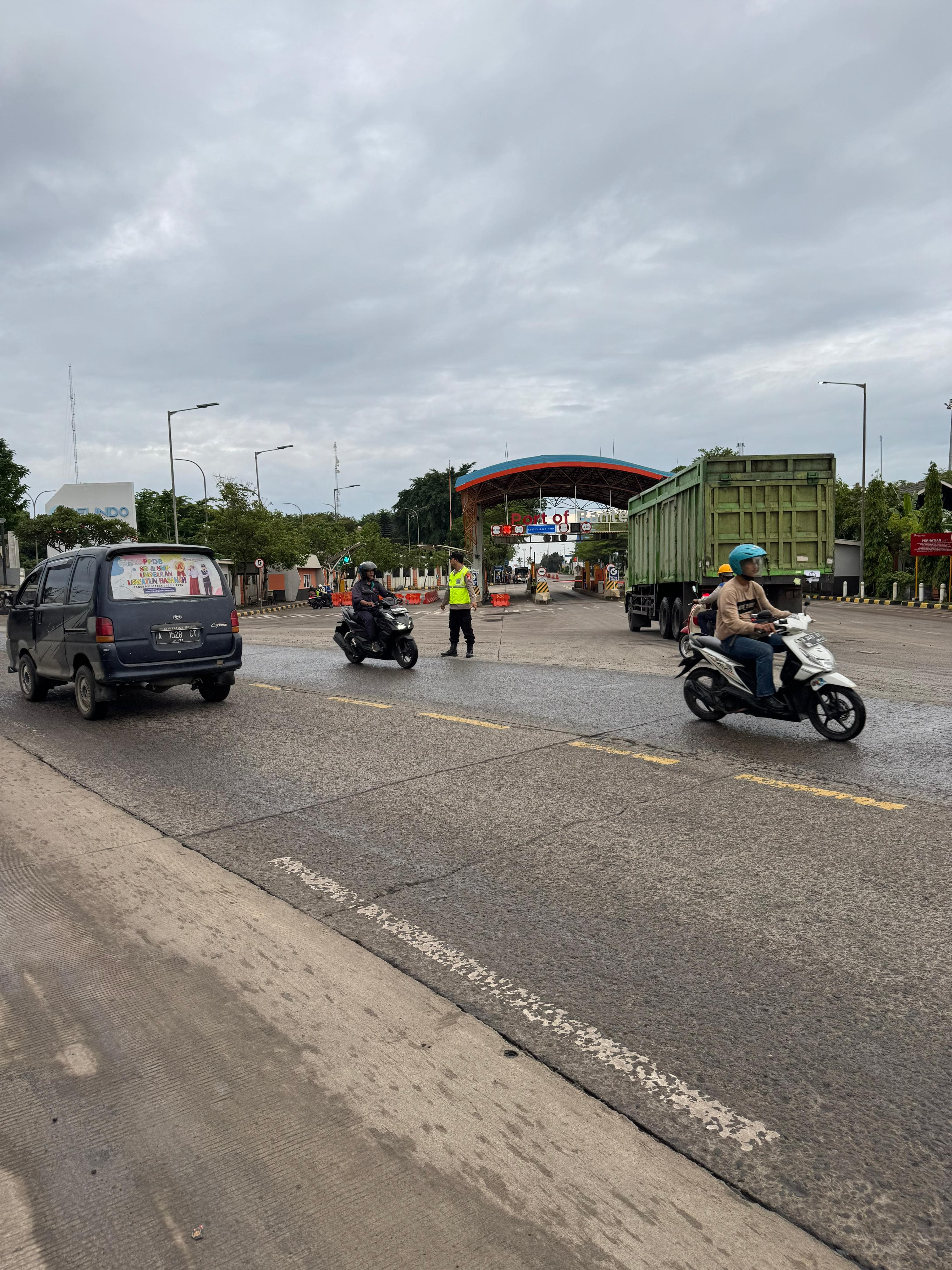 Kapolres Cilegon AKBP Martua Raja Taripar Laut Silitonga Melalui Kapolsek Kskp Banten Polres Cilegon AKP Fredo Leonard menyampaikan Laksanakan Pengamanan Sesuai plotinganya lakukan Pengaturan Supaya Arus Lalu Lintas tetap Berjalan lancar dan Pastikan tidak ada hambatan.