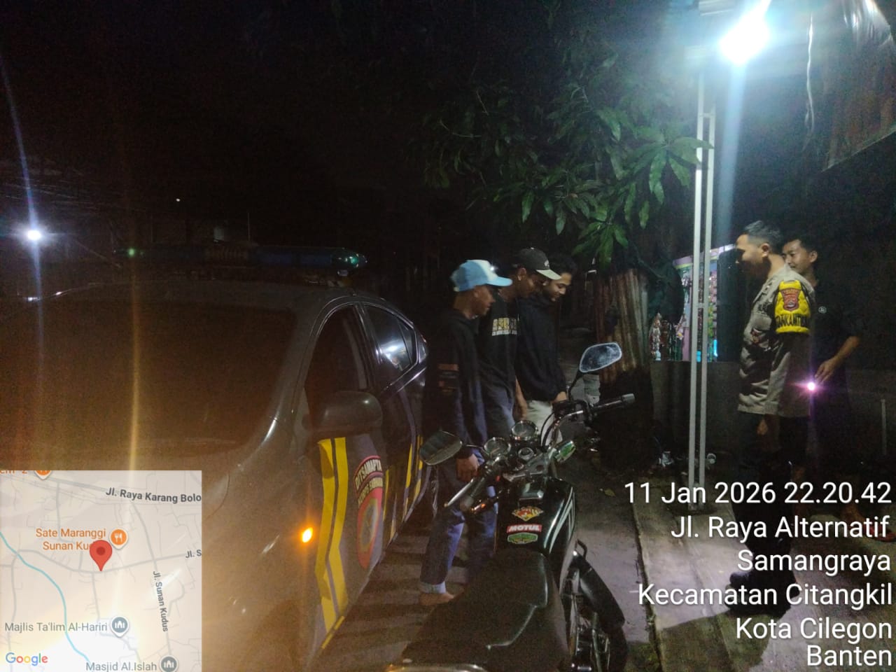 Kapolres Cilegon Polda Banten AKBP Dr. Martua Raja Taripar Laut Silitonga Melalui Kapolsek Ciwandan Polres Cilegon Polda Banten KOMPOL Andi Suherman Mengatakan bahwa setiap malam Personil Polsek Ciwandan Polres Cilegon Polda Banten menggelar patroli dengan menyasar daerah rawan dan Pada Jam Yang Dianggap Rawan, Hal tersebut dilakukan untuk mencegah terjadinya gangguan kamtibmas seperti kejahatan jalanan jambret ataupun curanmor.