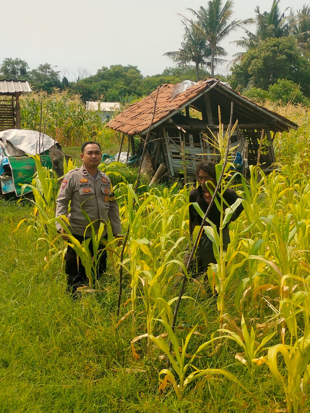 melihat lahan jagung pok tani sinarjaya kecamatan.puloampel Desa sumranja oleh Bhabinkamtibmas Polsek Puloampel
