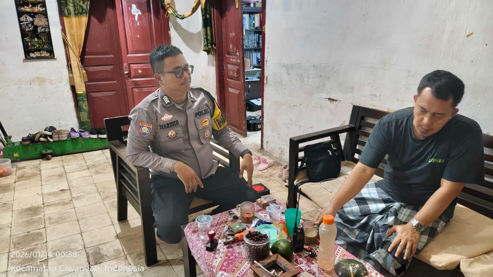 Cilegon - Bhabinkamtibmas Polsek Ciwandan Polres Cilegon Polda Banten Menyapa warga serta Ajak warga Binaannya untuk berperan aktif jaga keamanan lingkungan serta jalin komunikasi agar tercipta situasi aman di daerah hukum Polsek Ciwandan Polres Cilegon Polda Banten, Rabu (14/01/2026).
