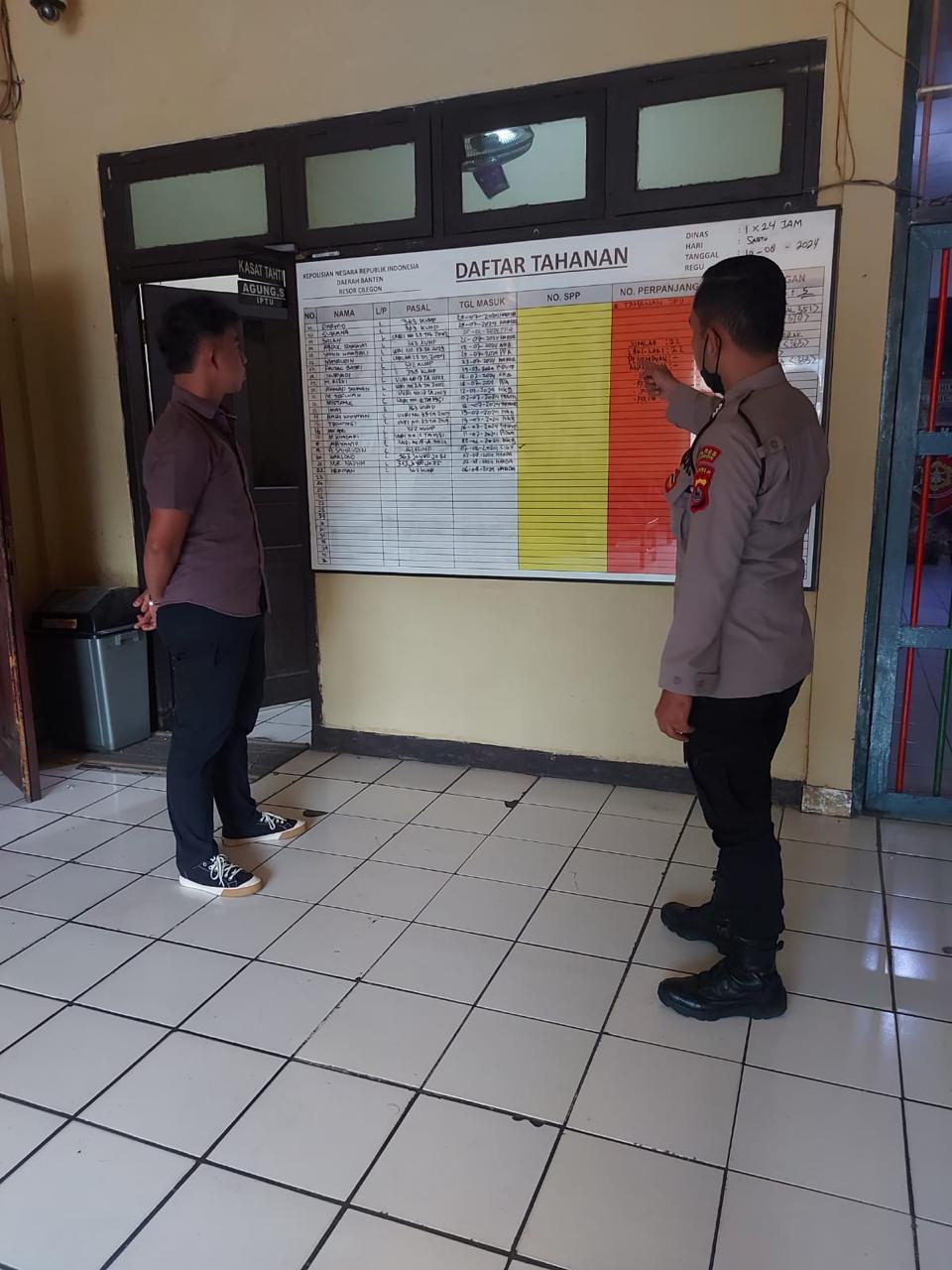 Cilegon,Polres Cilegon Polda Banten Pada Hari Jumat 16/Januari/2026 Pukul 08.10 Wib,Brigadir Hadi Sudrajat melaksanakan Pengechekan Data dan Jumlah Tahanan yang ada Di Polres Cilegon.