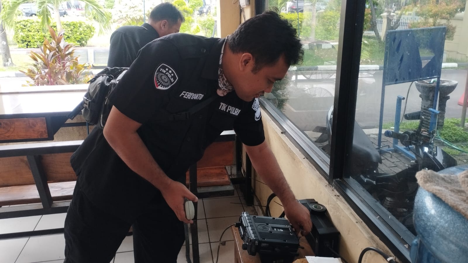 Anggota Tik Polres Cilegon Menyiapkan Sarana dan Prasarana Alkom Dalam pelaksanaan tugas tersebut anggota TIK Polres Cilegon yang bertanggung jawab untuk menyiapkan peralatan sarana alkom berupa handy talky. Selain itu agar di tidak ada gangguan pada jaringan, sebelum pelaksanaan anggota TIK melakukan pemeriksaan terhadap sarana dan prasarana tersebut . Satu jam sebelum sarana alkom digunakan. Kapolres Cilegon AKBP. DR. MARTUA RAJA TARIPAR LAUT SILITONGA. melalui Kasi TIK AIPTU Suwanto, S.H. menyampaikan bahwa “untuk menunjang kelancaran penyampaian informasi anggota TIk Polres Cilegon selalu memeriksa sarana dan prasarana tersebut, sebelum maupun pada saat pelaksanaan akan selalu di monitor”
