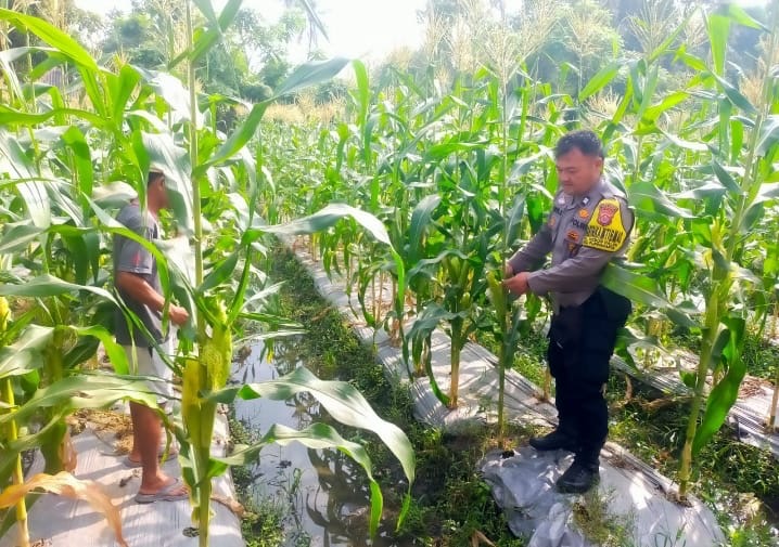 Bhabinkamtibmas Cek Tanaman Jagung di Bebulak Timur, Dukung Program Ketahanan Pangan