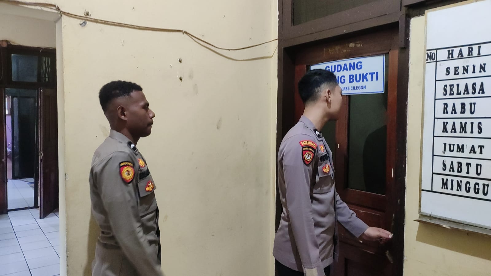 Piket Sat Tahti Melaksanakan Kegiatan Pengecekan Barang Bukti Di Sattahti Polres Cilegon