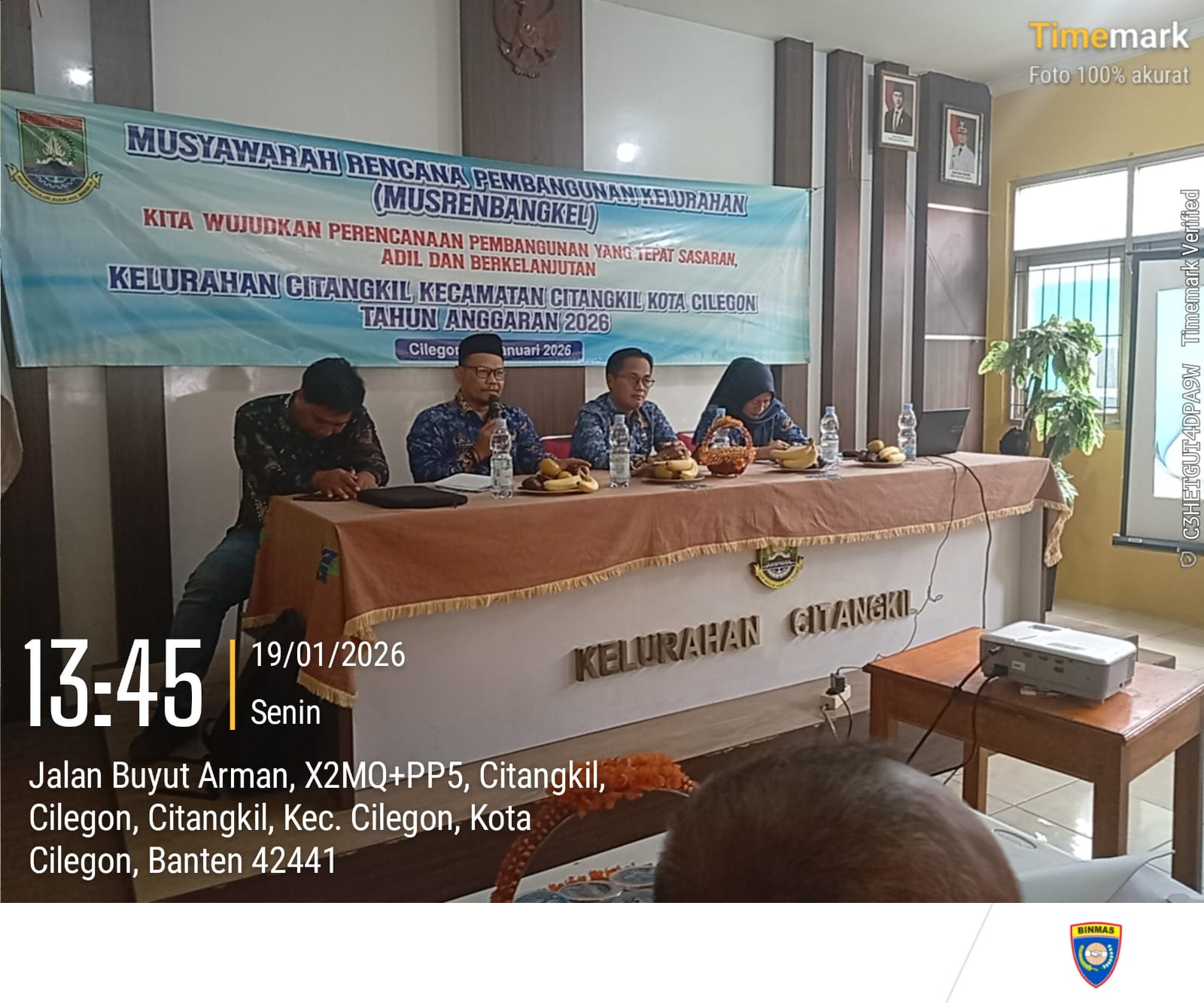 Kegiatan ini Bertempat di lingkungan Kelurahan Citangkil kecamatan Citangkil kota Cilegon, Musrenbang kelurahan ini untuk pembangunan TPT,vaping Blok, drainase dan lainnya.