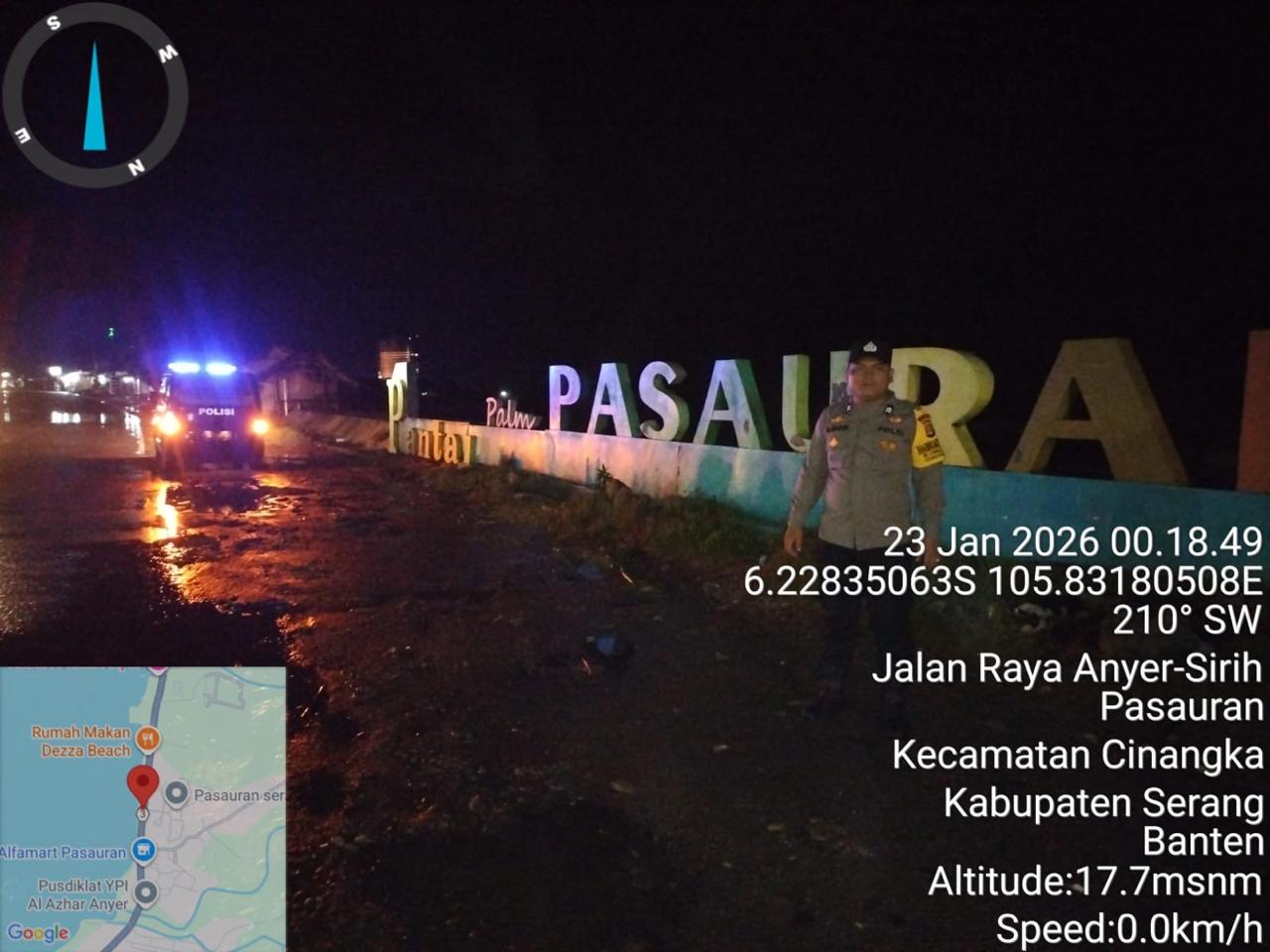 *POLRES CILEGON* - Patroli malam hingga dini hari ini rutin dilakukan oleh anggota Kepolisian Polsek Cinangka Polres Cilegon Polda Banten.