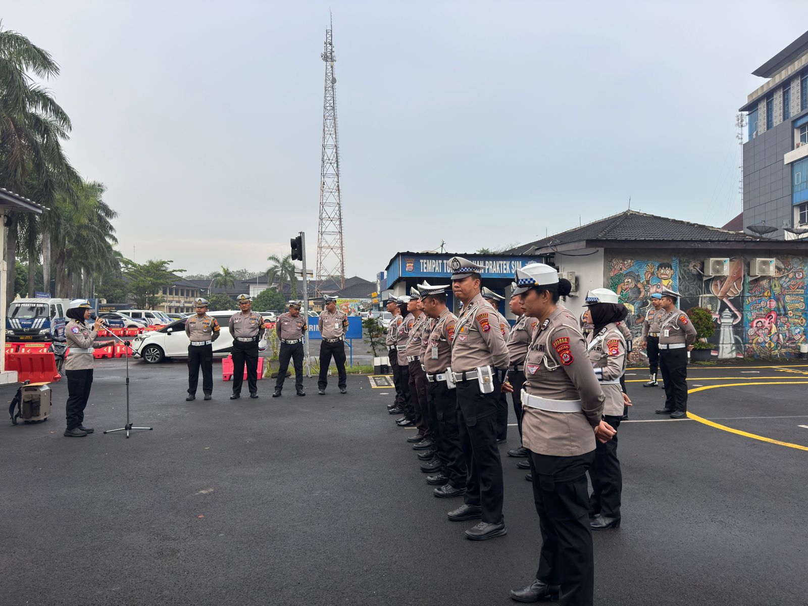 Cilegon, Satlantas Polres Cilegon Polda Banten – Kaurmintu Satlantas Polres Cilegon IPDA Dwi Chairani pimpin pelaksanaan apel Pagi yang dilakukan oleh personel Satlantas Polres Cilegon pada Pagi hari ini yang bertempat di Lapangan praktik SIM Satlantas Polres Cilegon, Minggu (25/1/2026) Pagi pukul 06.00 Wib.