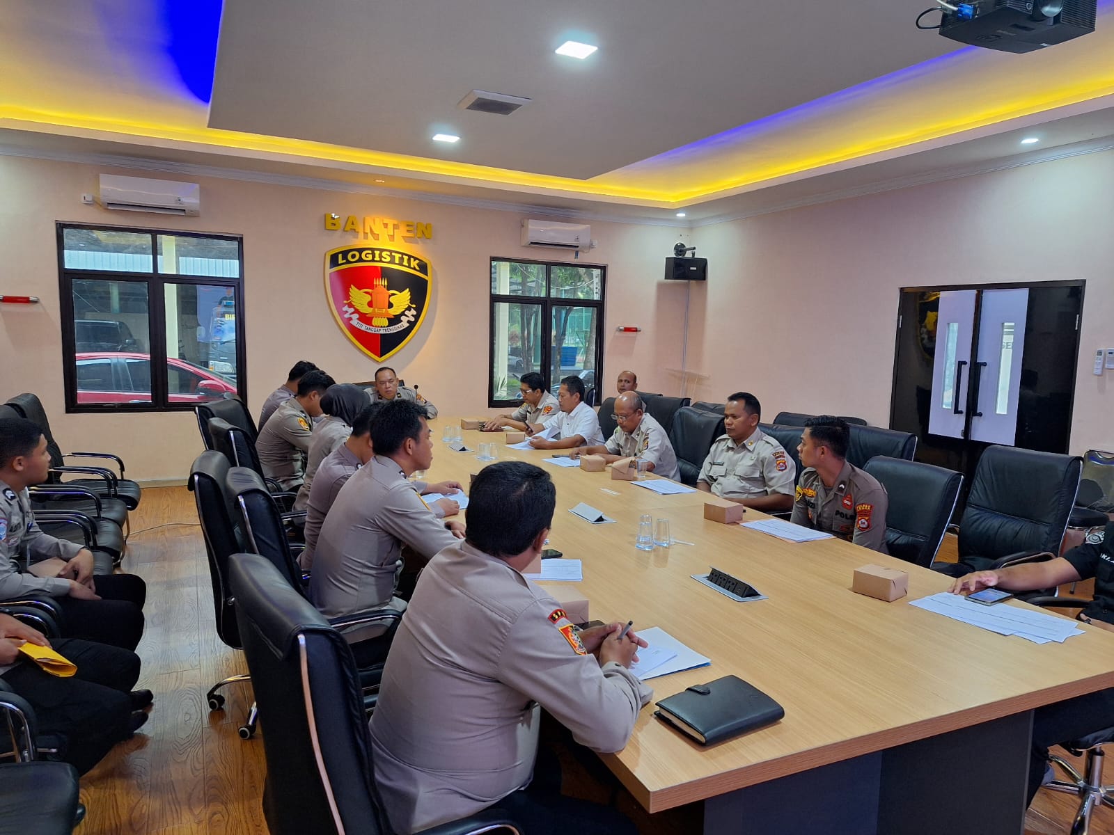 cilegon Polda Banten Staf Logistik melakukan pengisian aplikasi SIMAK dan SIMAN