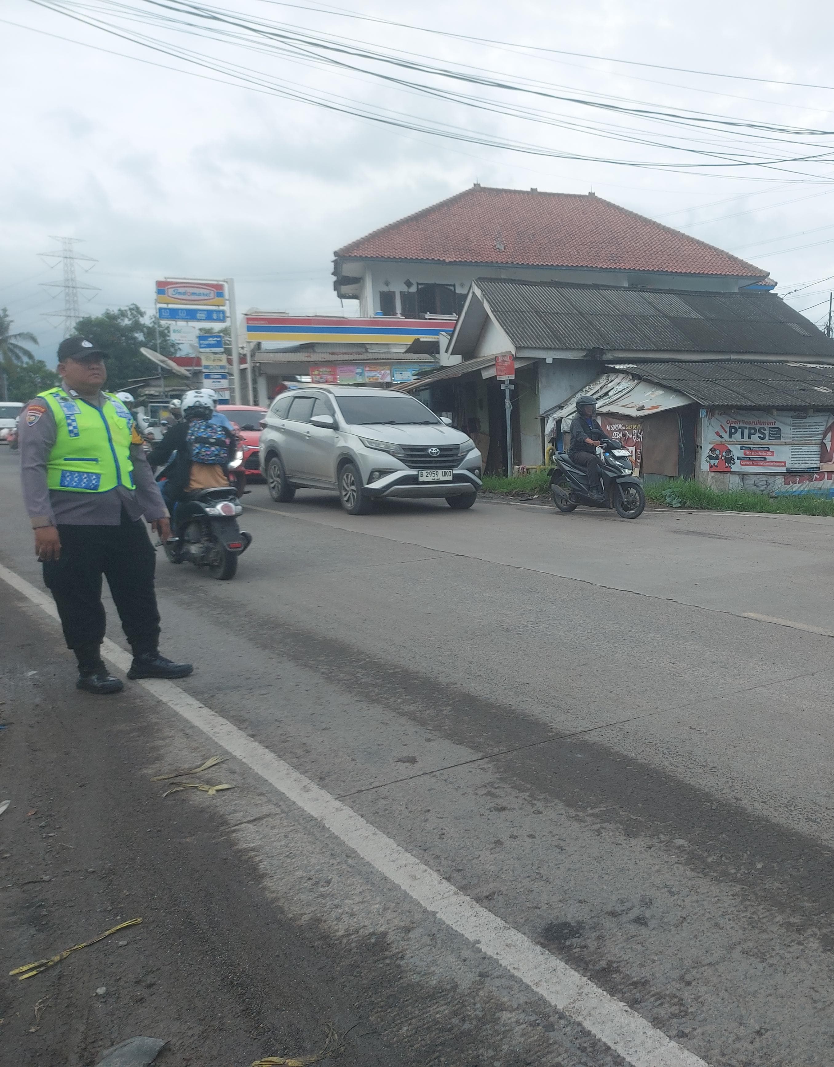 Ciptakan Situasi Lalu Lintas Aman, Bripka Tri Handoko dan Bripka Heru Bhabinkamtibmas Laksanakan Gatur Lalin Pagi Hari Di Simpang Jalan Raya Wadas Bojonegara