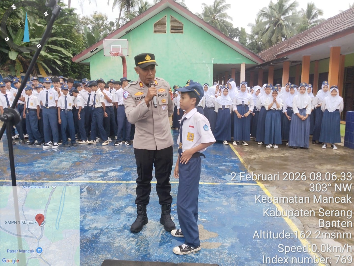 Mancak - Sebagai Pengemban Fungsi Harkamtibmas, Bhabinkamtibmas melaksanakan Kegiatan Pembina Upacara dan Silatuhrami SMPN 1 Mancak dalam rangka Program Quick Wins Presisi Kapolri dan Program Commander Wish Kapolres Cilegon "TRENDING"*. MINGGU, (02/02/2026).