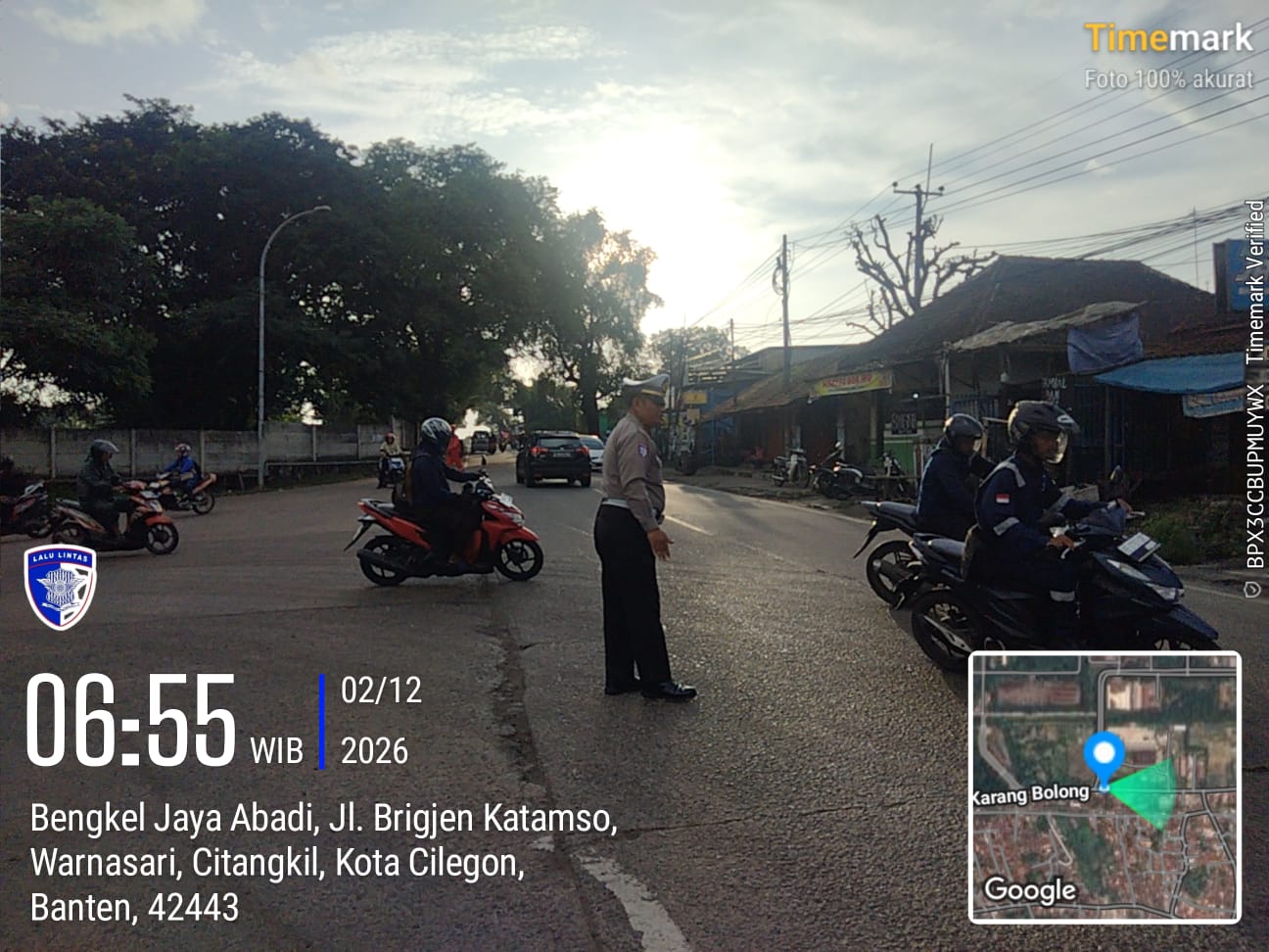 Cilegon - Dalam Mewujudkan Aksi Nyata Pelayanan Kepada Masyarakat,Personil Polsek Ciwandan Polres Cilegon Polda Banten Laksanakan Strong Poin Pengaturan Lalu-lintas Pagi, Rabu (11/02/2026).