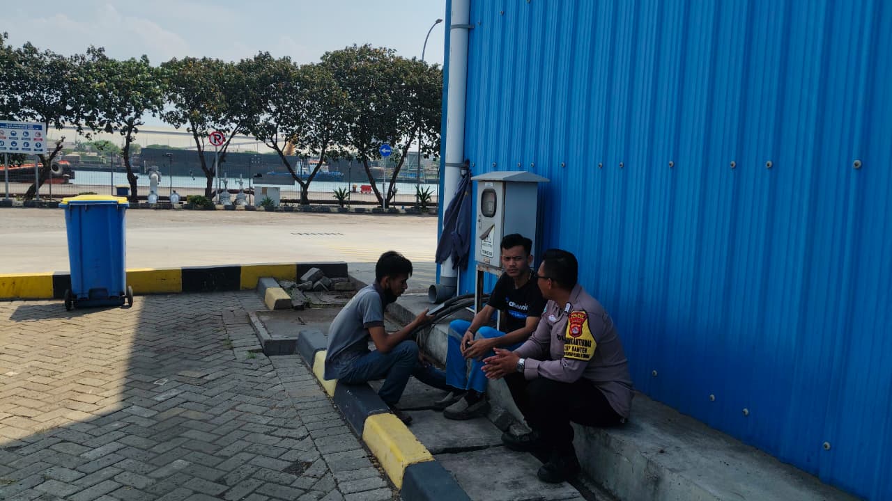 Personil Bhabinkamtibmas Polsek Kawasan Pelabuhan Banten Berbincang dengan Buruh Pelabuhan