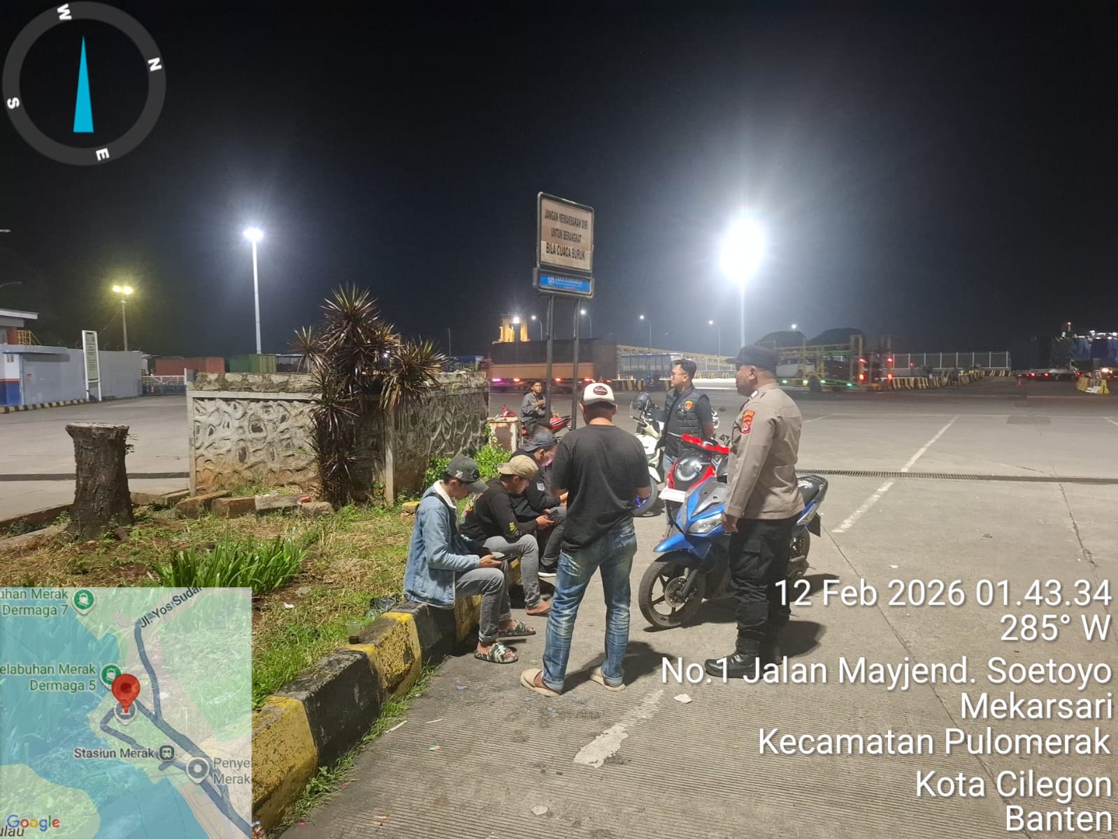 Cilegon - Personil Polsek Kskp Merak Polres Cilegon melaksanakan patroli di kawasan pelabuhan merak memberikan rasa aman dan damai, Kamis (12/02/2026)