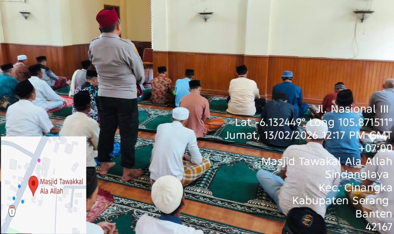 *POLRES CILEGON* - Kapolsek Cinangka Polres Cilegon Polda Banten dan Jajaran melaksanakan giat Juma't keliling dalam rangka silaturahmi menjalin kemitaraan dan menjaga Harkamtibmas di Desa Binaannya sebagai bentuk mendukung Program Quick Wins Presisi Polri, Jumat (13/02/2026).