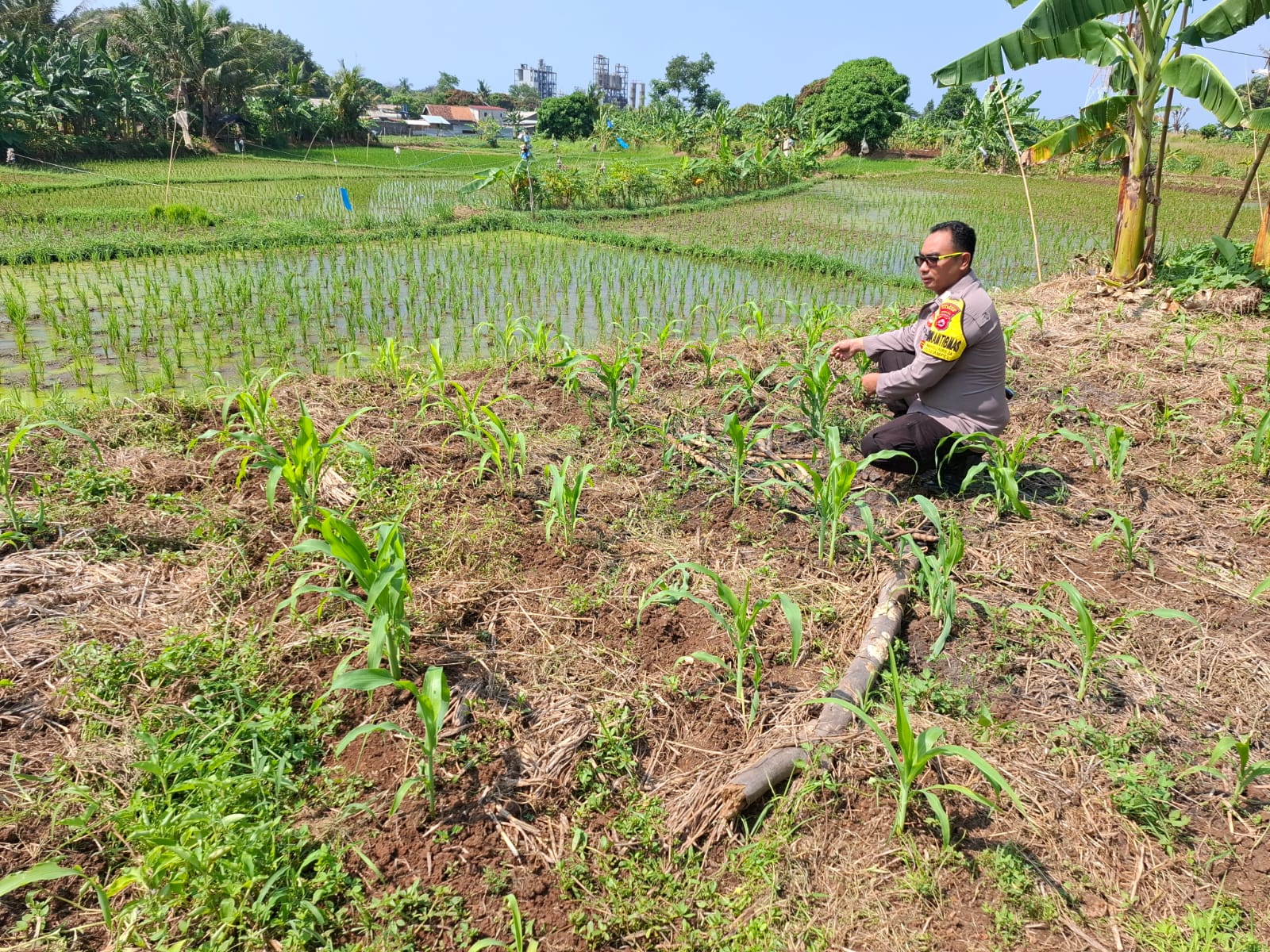 Pantau aktif lahan jagung pok tani sinarjaya kecamatan puloampel Desa sumranja oleh Bhabinkamtibmas Polsek Puloampel